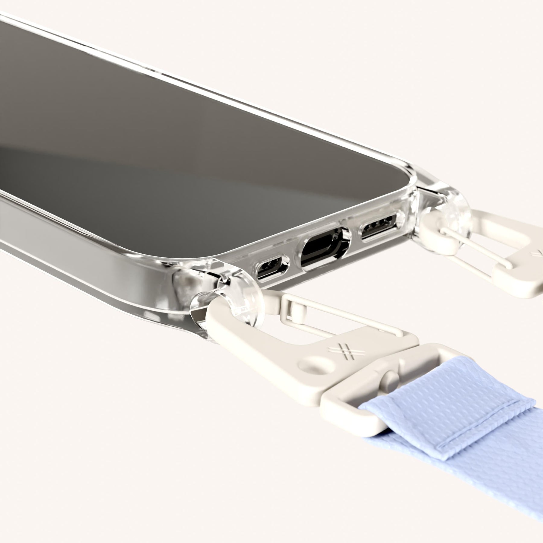 Phone Necklace with Lanyard in Clear + Baby Blue